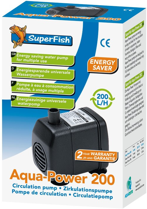 De SuperFish Aqua-Power 200 is een circulatiepomp en is ideaal voor het opvoeren of circuleren van water in aquaria, kamerfonteinen, biologische filters etc. Deze pomp is gemaakt om geheel ondergedompeld te gebruiken.