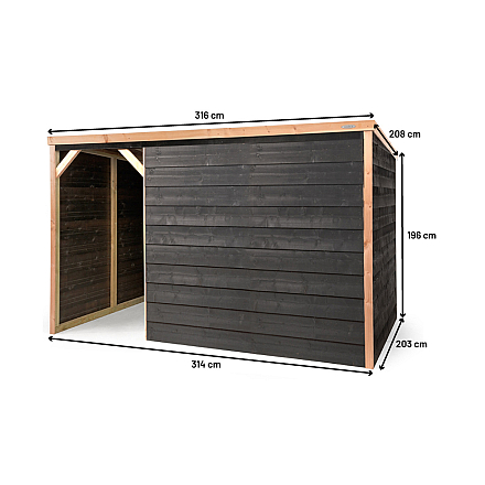 De Voldux schuilstal December is een aanwinst voor jouw dieren. Deze ruime schuilstal heeft een (buitenwerk) grondmaat van (L) 314 x (B) 203 centimeter en is geschikt voor kleine boerderijdieren zoals; kippen, ganzen en eenden maar biedt ook voldoende ruimte voor bijvoorbeeld schapen, geiten of een shetlander. De stal is opgebouwd met een grenen frame, deze houtsoort is behandeld voor langdurig buitengebruik. De buitenzijde is voorzien van zwart potdeksel en douglashouten details. Deze spraakmakende kleurencombinatie geven een prachtige uitstraling aan de stal. Het dak is volledig gesloten en afgewerkt met sterk dakleer voor een optimale afwatering.