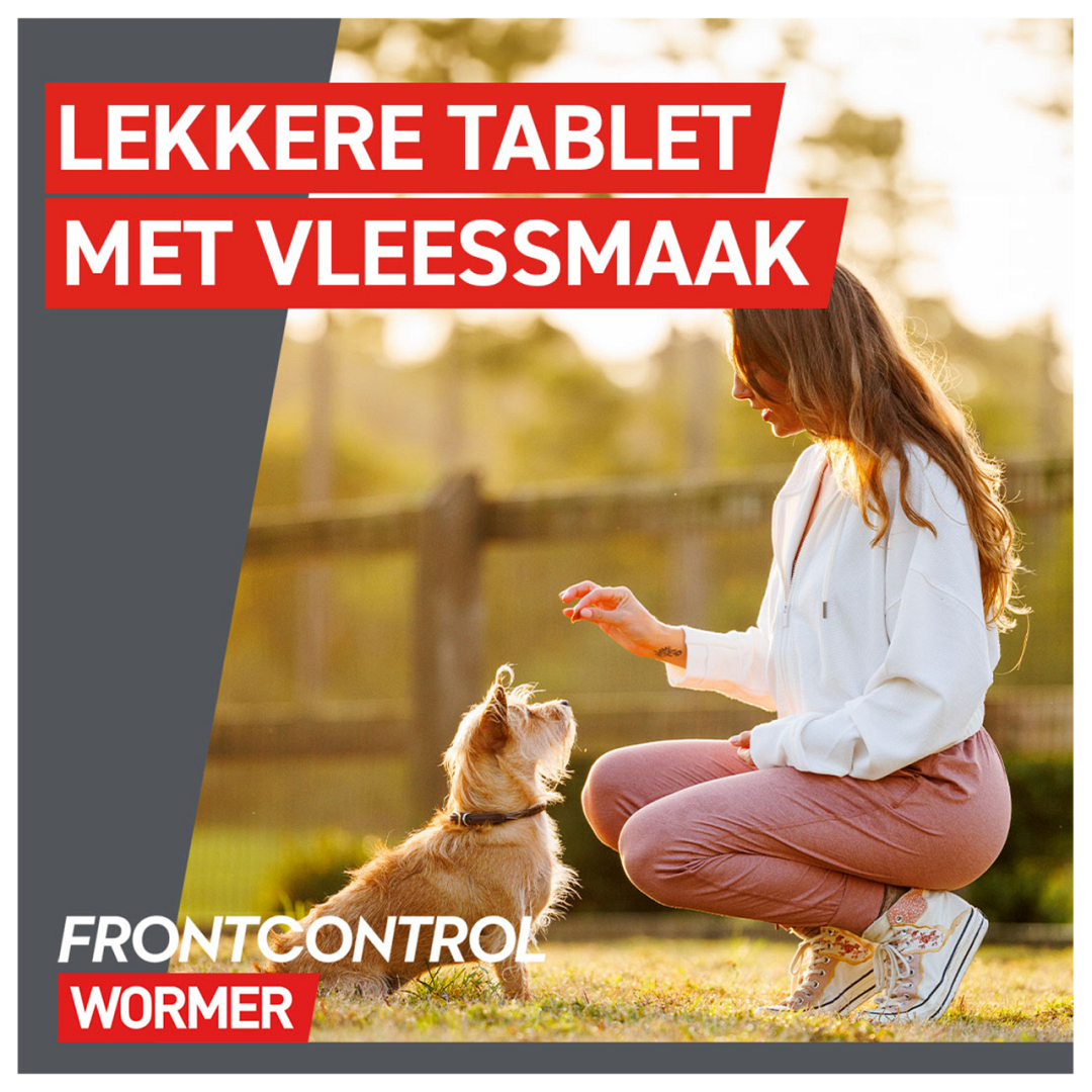 Frontcontrol doodt darmwormen die vaak voorkomen in Nederland: spoelwormen, lintwormen, haakwormen en zweepwormen bij honden. Toedienen: 1 tablet per 10 kg lichaamsgewicht.