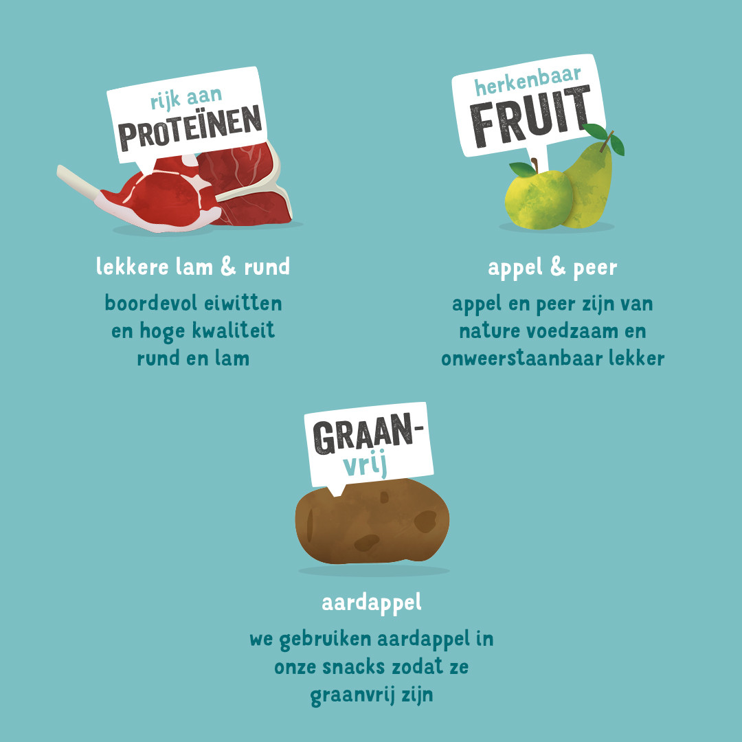 Graanvrije jerky met lam en rund voor honden die een smakelijke snack verdienen.