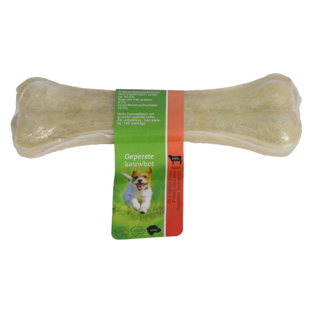 Dit zwaargeperste bot van buffelhuid is van de beste Thaise kwaliteit en is 100% natuurlijk. Dankzij de vorm aan de twee uiteindes van het bot is het uitermate geschikt voor het gebit en tandvlees.