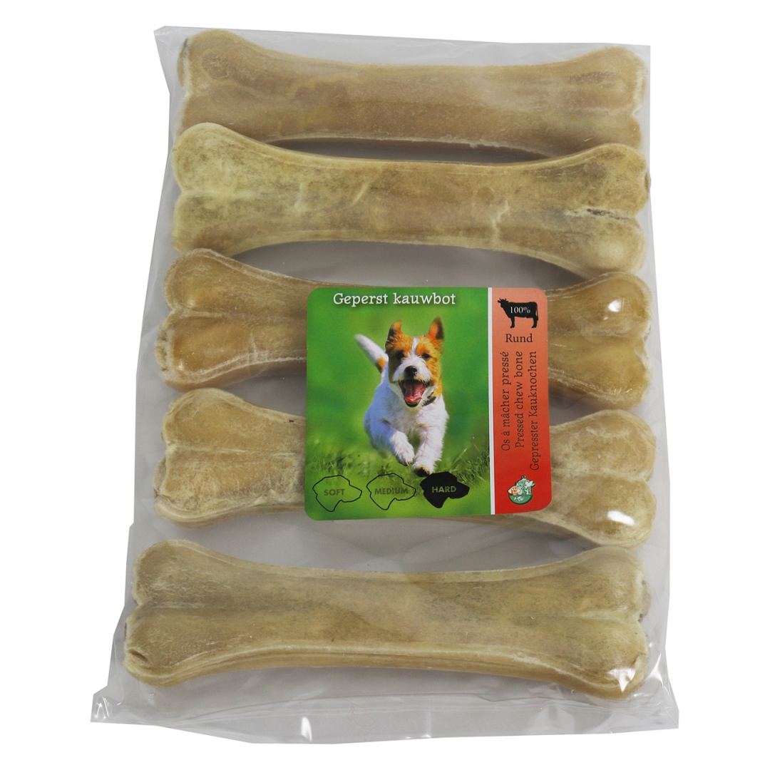 Jouw hond moet goed kauwen op geperste botten, waarmee het direct een verzorgende werking heeft op het gebit van jouw hond.