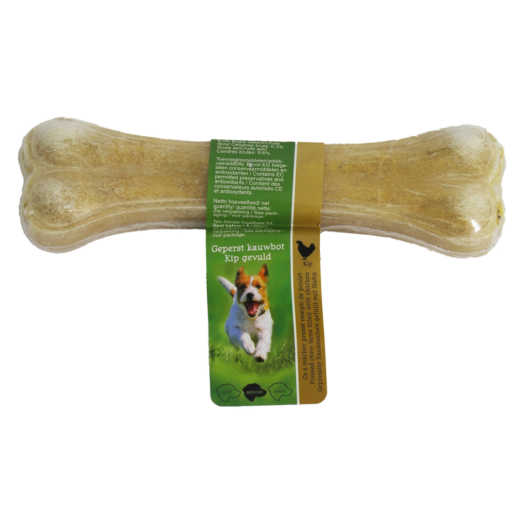 Geperste bot van buffelhuid gevuld met kip. Onweerstaanbaar lekker en zorgt voor lang kauwplezier.