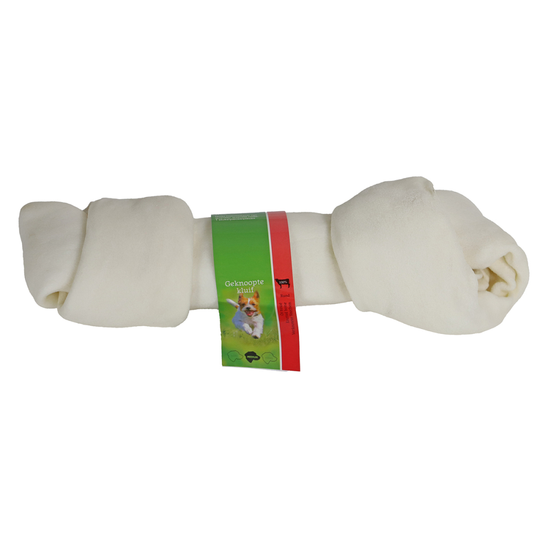 Witte knoopkluif van runderhuid, gemaakt van een zware kwaliteit onderhuids bindweefsel, voor extra lang kauwplezier.
