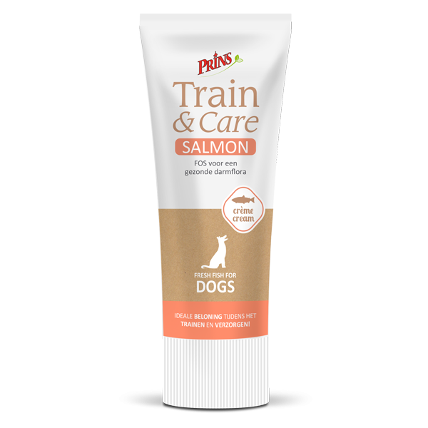 Prins Train & Care Salmon is rijk aan verse zalm. Deze beloningscrème is niet alleen heel erg lekker, maar ook nog eens tarwe(gluten)vrij en bevat uitsluitend zalm als dierlijke eiwitbron.