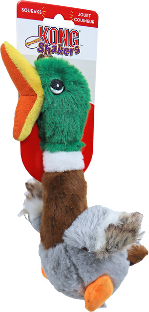 De Kong Shakers Honkers eend heeft een lange vorm met een nek met daarin een structuur die aanzet tot kauwen. Door de slappe poten kan de hond lekker met de eend schudden.