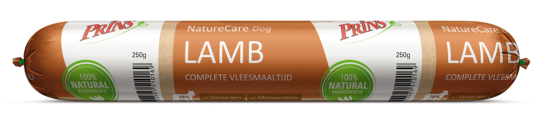 Prins NatureCare Lamb is een volledige graanvrije vleesvoeding en bijzonder geschikt als gezonde variatie op de droogvoeding. De met zorg geselecteerde ingrediënten dragen bij aan een gezonde huid en glanzende vacht en ondersteunen een evenwichtige darmflora. Deze voeding bevat alleen lam als enige dierlijke eiwitbron, wat de kans op een overgevoeligheidsreactie vermindert. Deze voeding is ook geschikt als verantwoorde beloning tijdens training.