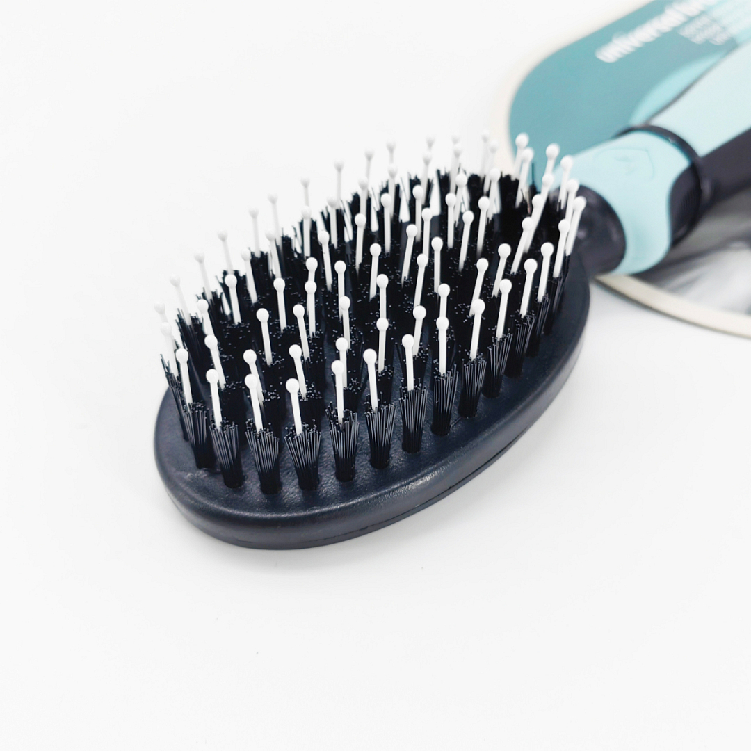 Aan het uiteinde van elke pin zit een kunststof bolletje. Deze bolletjes zorgen ervoor dat de borstel veilig en comfortabel is in gebruik en geen schade veroorzaakt aan de gevoelige huid. Daardoor is deze borstel uitermate geschikt voor dagelijks gebruik.