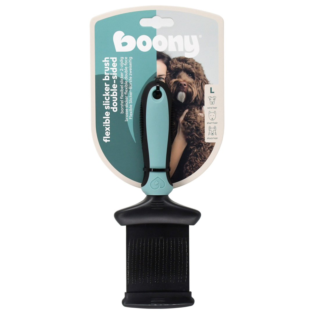 Verwijder moeiteloos losse en dode haren met deze Boony Flexibele slicker, een veelzijdige borstel die geschikt is voor zowel honden met een dunne als met een dikke vacht. Dankzij het doordachte ontwerp en de flexibele rug verzorg je de vacht grondig, zonder de gevoelige huid te belasten. Beide zijdes zijn uitgerust met dezelfde pennen en leveren gelijke prestaties.