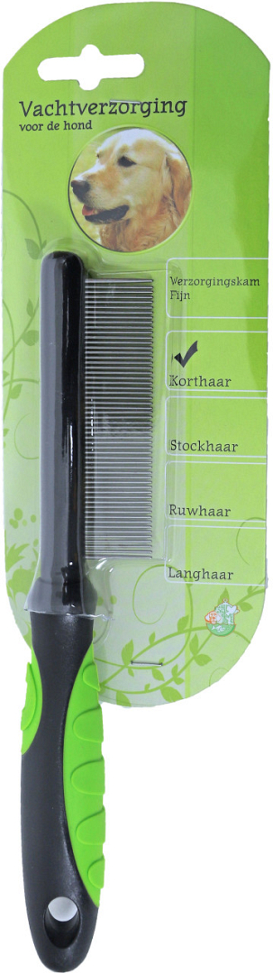 De kam fijn verzorgt de vacht van jouw hond door deze los te maken, op deze manier worden losse haren, vuil en eventuele klitten verwijderd. Deze verzorgingskam is geschikt voor alle honden met een dunne langharige vacht.