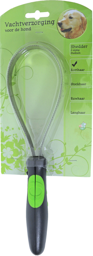 De shedder 2-zijdig medium verzorgt de vacht van je hond, door middel van het verwijderen van vuil, nattigheid, losse- en dode haren uit zowel de onder- als de bovenvacht. Deze shedder is geschikt voor alle kortharige honden. Omdat het shedderblad zowel over grove als fijne tanden beschikt is hij geschikt voor zowel honden met een dikke- als met een dunne vacht.