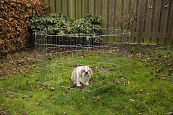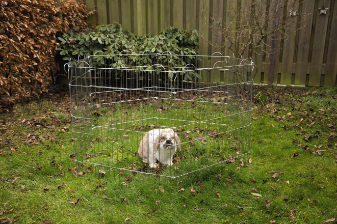 De losse panelen zijn gemakkelijk in elkaar te zetten, door middel van de bijgeleverde pinnen. Deze ren is voorzien van een deurtje, waardoor je jouw konijn gemakkelijk in de ren plaatst. De Beeztees konijnenren is ook binnen te gebruiken!