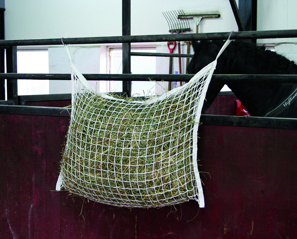 Dit sterke hooinet is een "slow feeder". Door het fijne maassysteem (3cm*3cm) wordt de snelheid van de ruwvoeropname vertraagd en de fourage-tijd verlengd.