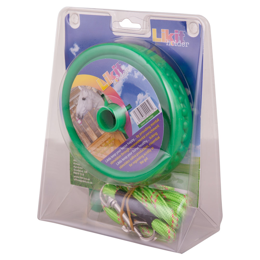 Likithouder met touw voor 650 gr Likit. Tegen verveling op stal.