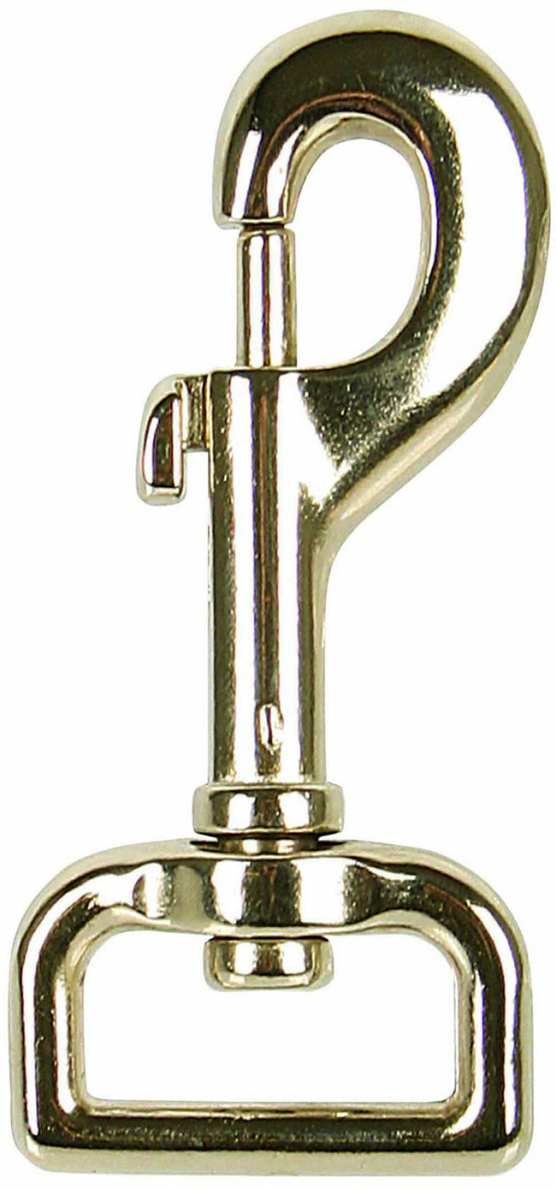 Musketonhaak, verkrijgbaar in Nickle Plated (NP, zilverkleurig) en Brass Plated (BP, goudkleurig).