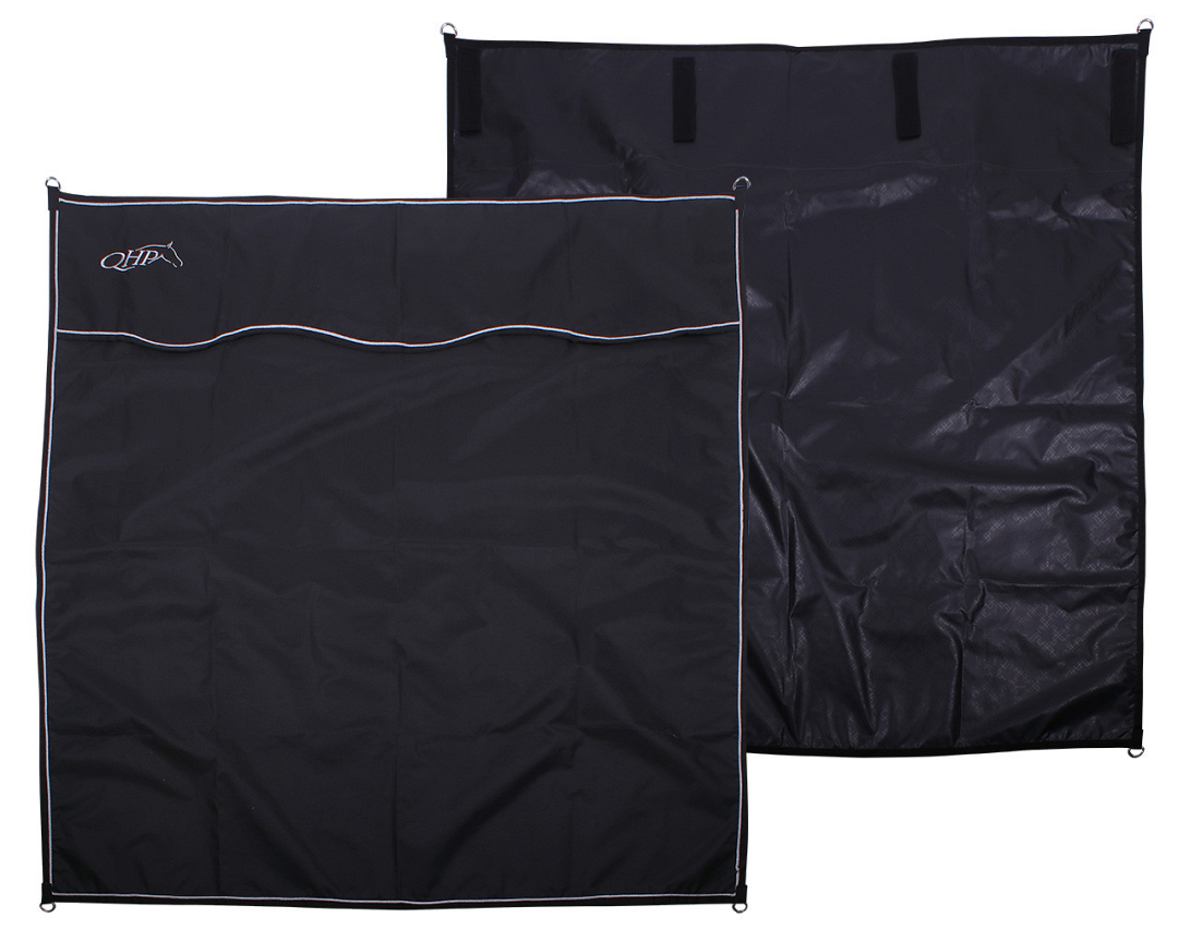 Geef jouw paard meer rust tijdens een evenement door dit QHP staldoek aan de boxwand te hangen. Het paard zal hierdoor minder prikkels van zijn omgeving binnen krijgen. Het doek kan worden bevestigd met vier brede klittenbandstroken en vier D-ringen.