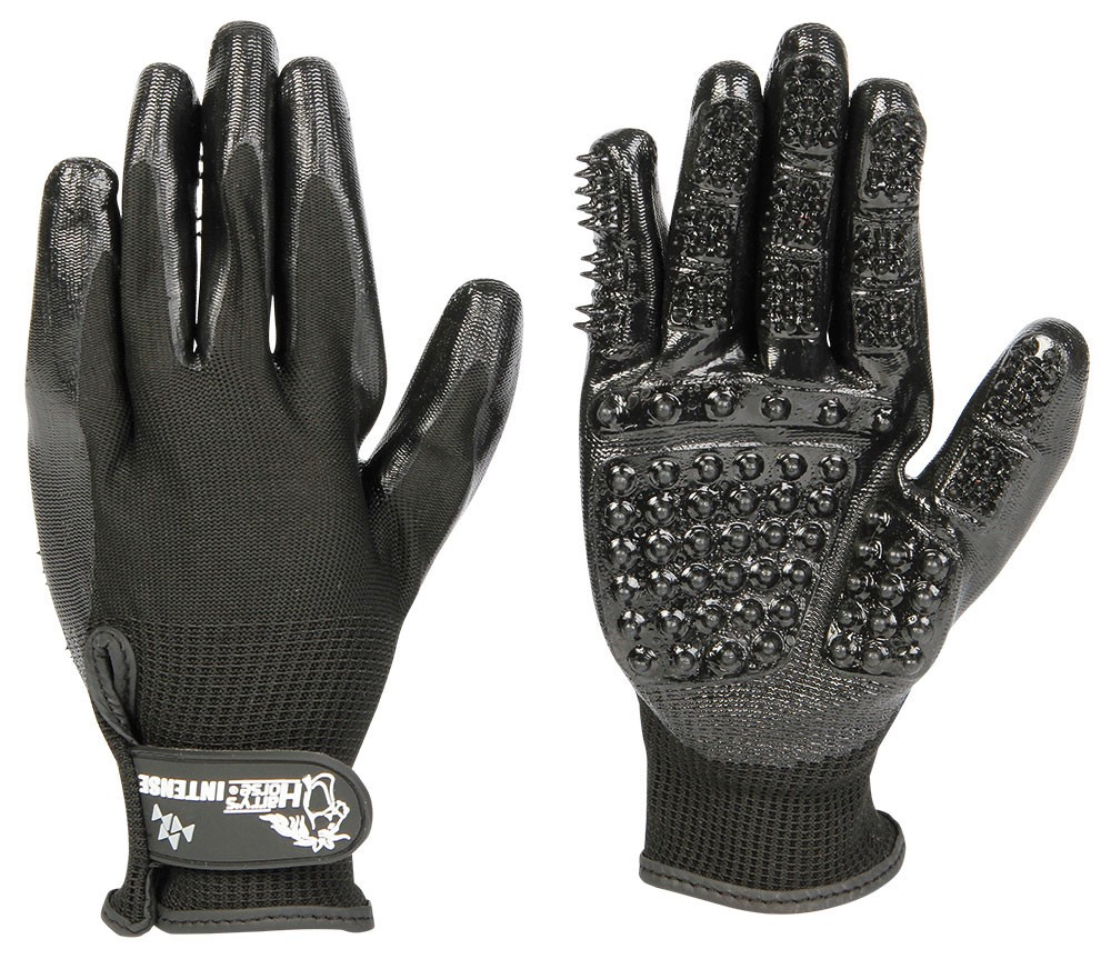 Poetshandschoen met stevige massage/scrub nopjes en ruime pasvorm. Ideaal bij het verzorgen van jouw paard.