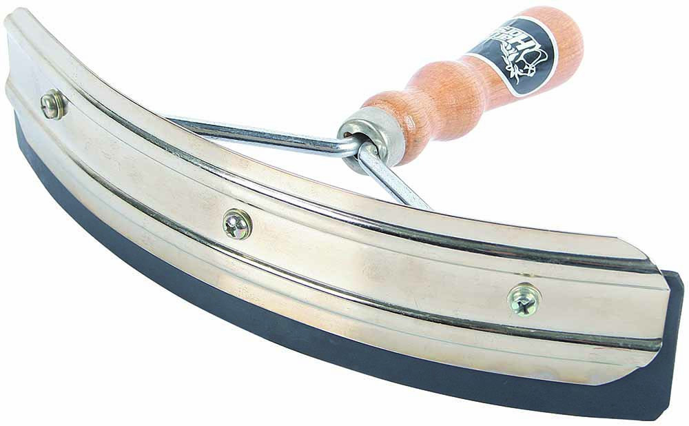 1-Hands zweetmes van RVS met houten handvat en rubberen blad.