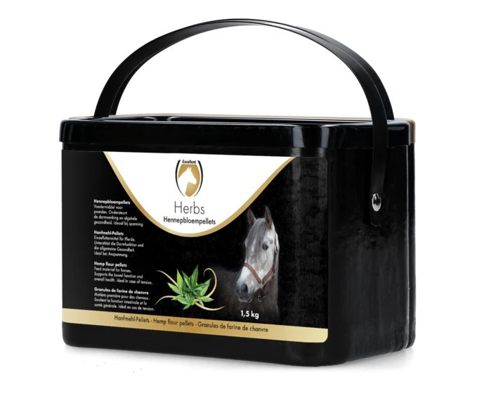 Excellent Herbs Hennepbloempellets is een aanvullend voeder voor paarden en ondersteunt de darmwerking en algehele gezondheid. Ideaal bij spanning.