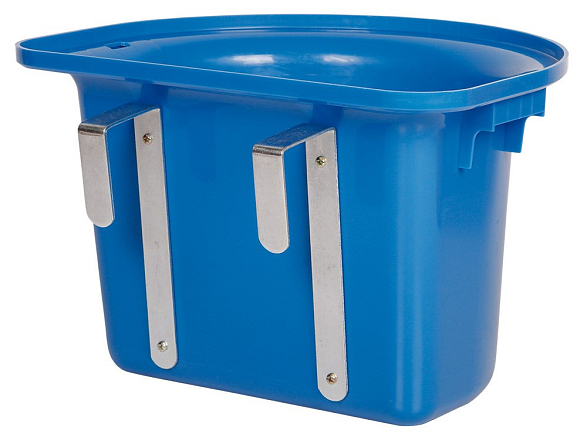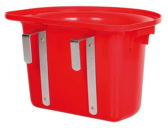 Kunststof voerbak met metalen beugels, makkelijk om mee te nemen of als uitneembak.