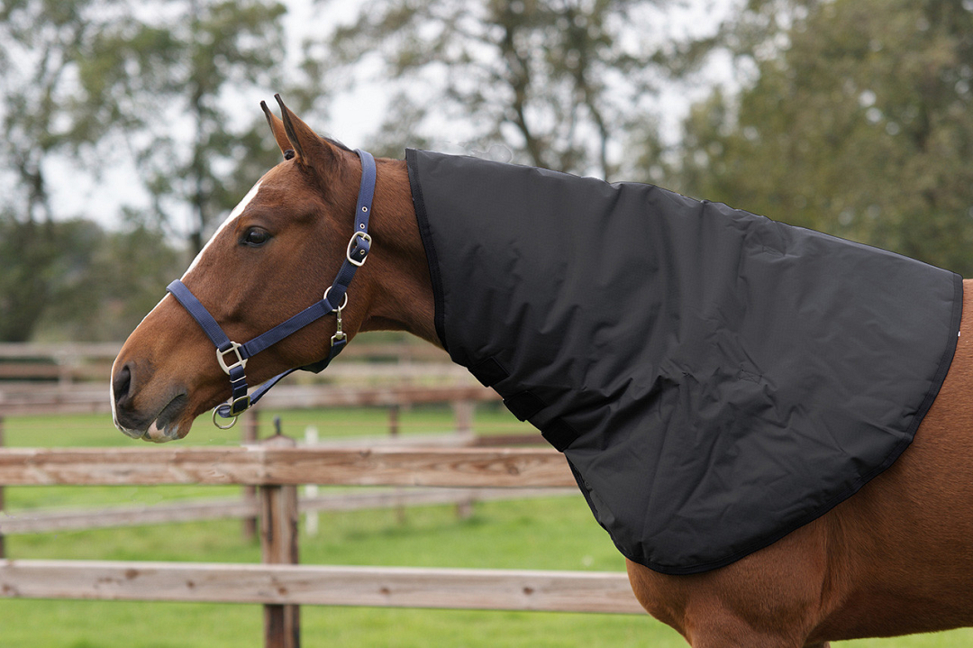 De QHP nek turnout is een losse hals met 200 grams voering, passend bij de turnout dekens. De hals is waterdicht en eenvoudig aan de dekens te bevestigen door middel van drie clips.