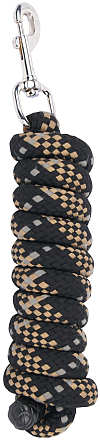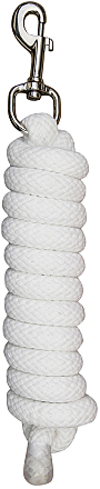 Stevig gevlochten halstertouw met gevulde kern. Bijzonder sterk, materiaal wordt ook gebruikt in touwen voor bergklimsport. Zilverkleurige musketon.