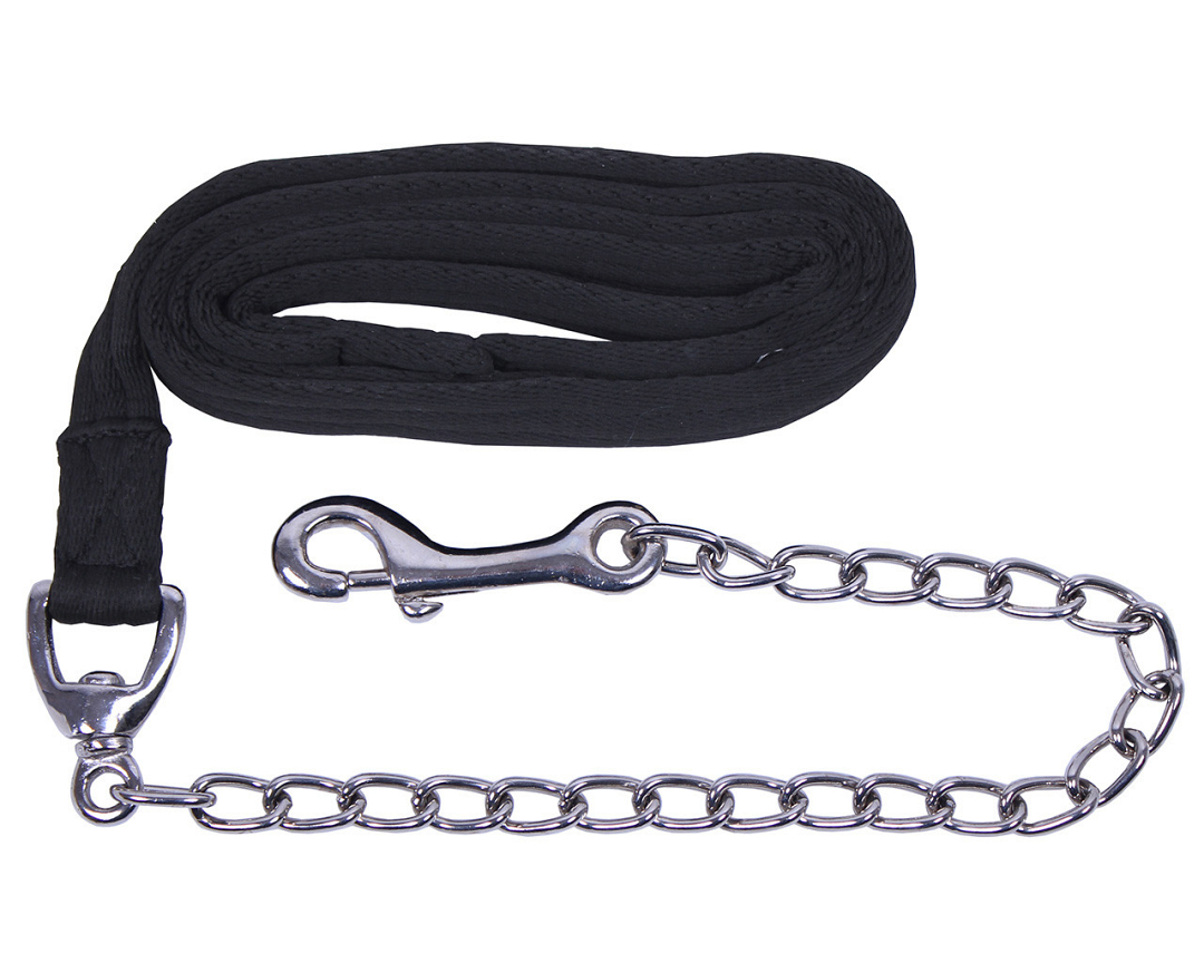 De QHP hengstenketting soft is een zachte longeerlijn van polyester met een lus aan het einde en voorzien van een zilverkleurige musketon.