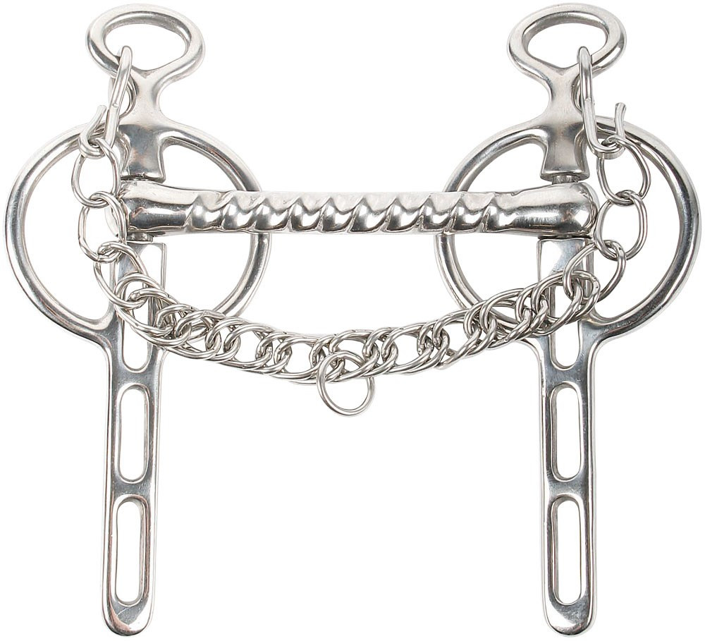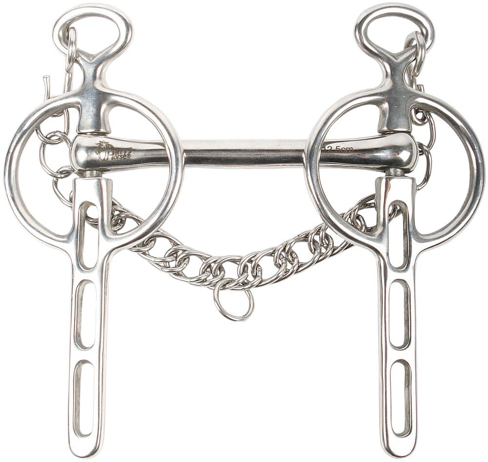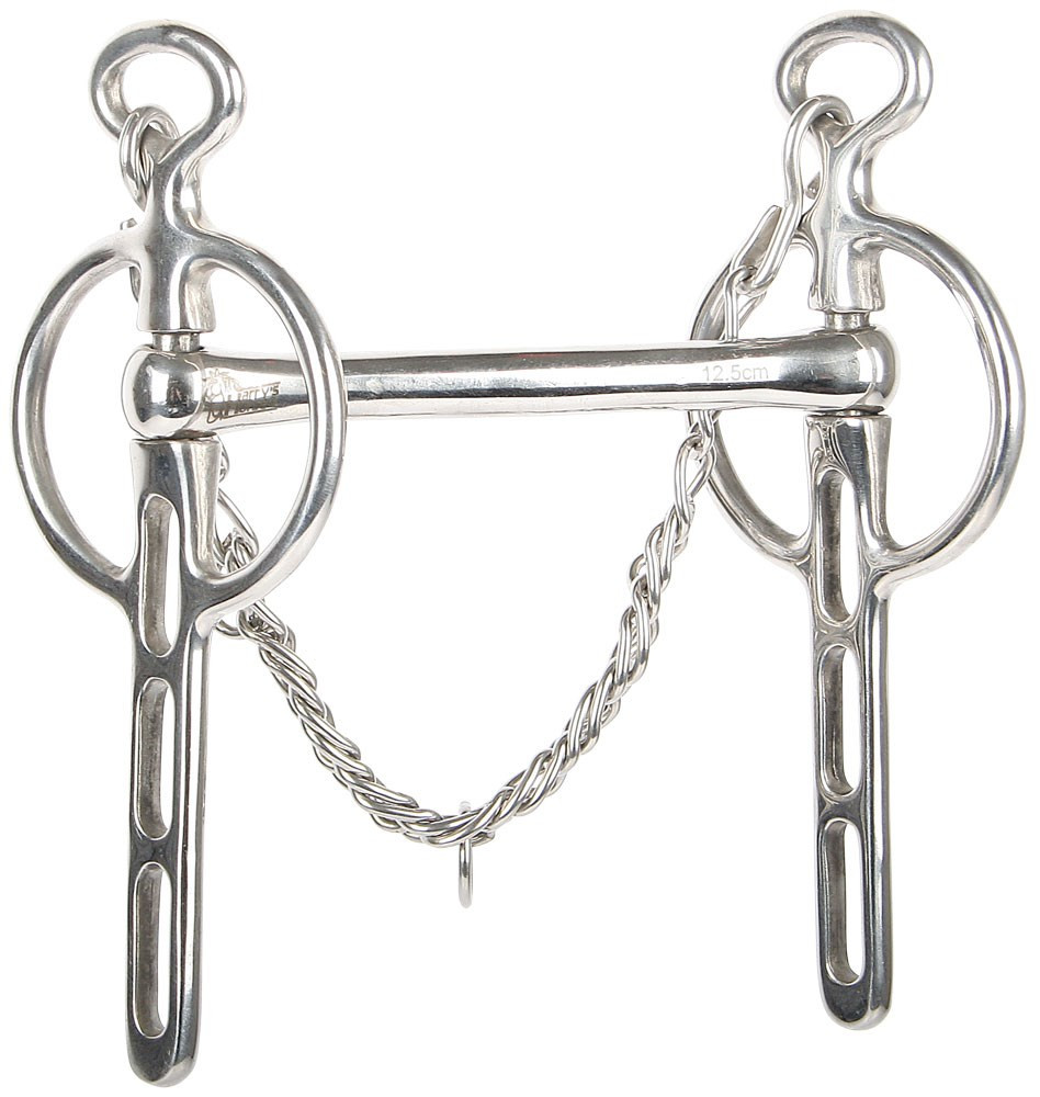 ?RVS Liverspool stang met recht mondstuk en scharen met 3 slots en lichte pompwerking, inclusief kinketting.