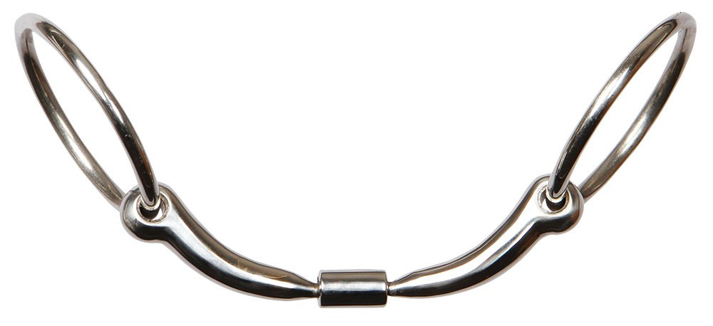 Dubbel gebroken en anatomisch gevormde watertrens met Roll-R tussenstuk. Geschikt voor paarden met weinig ruimte in de mond.