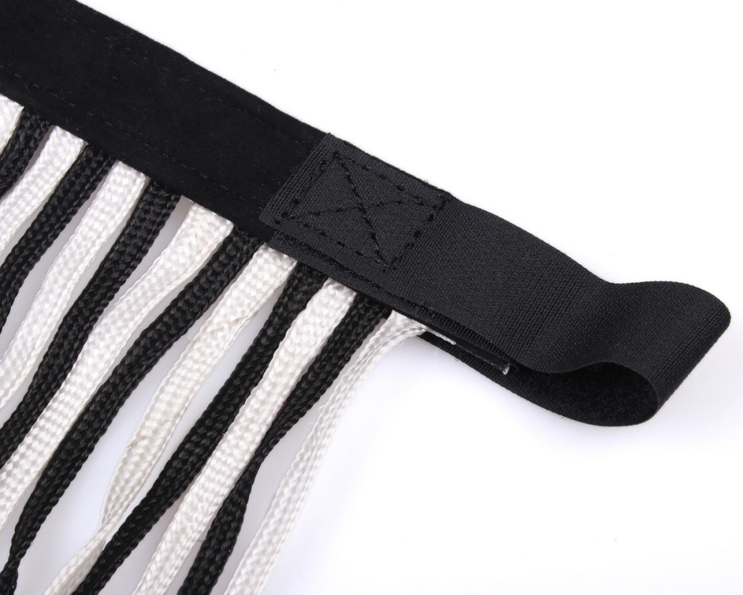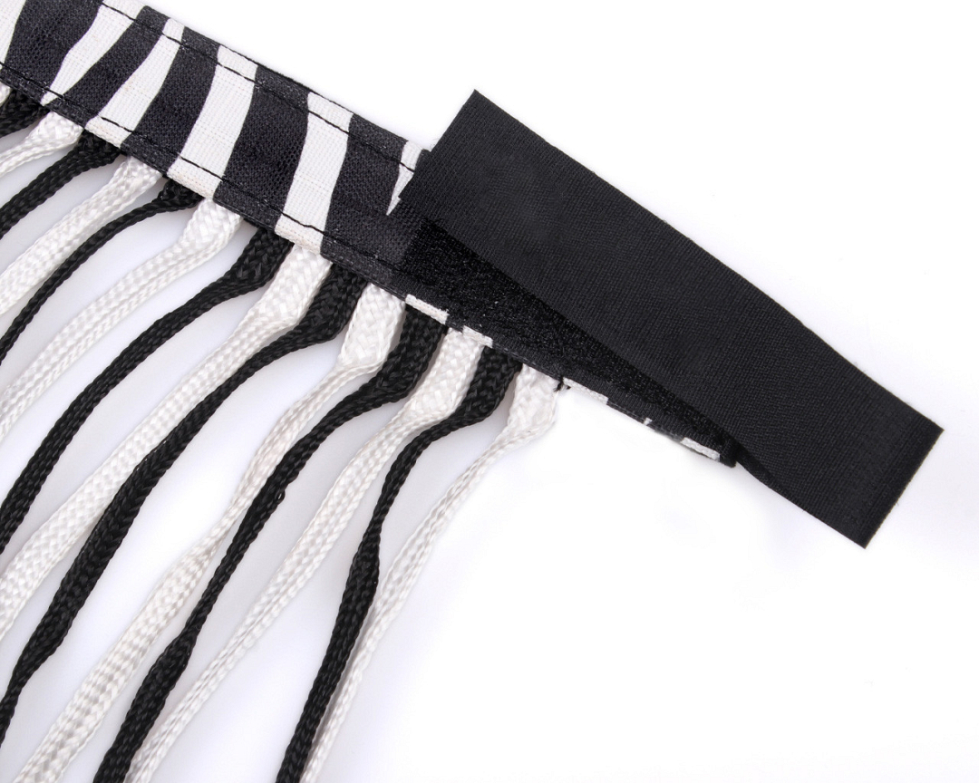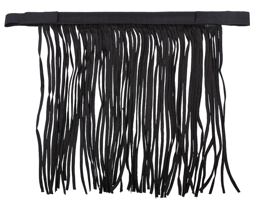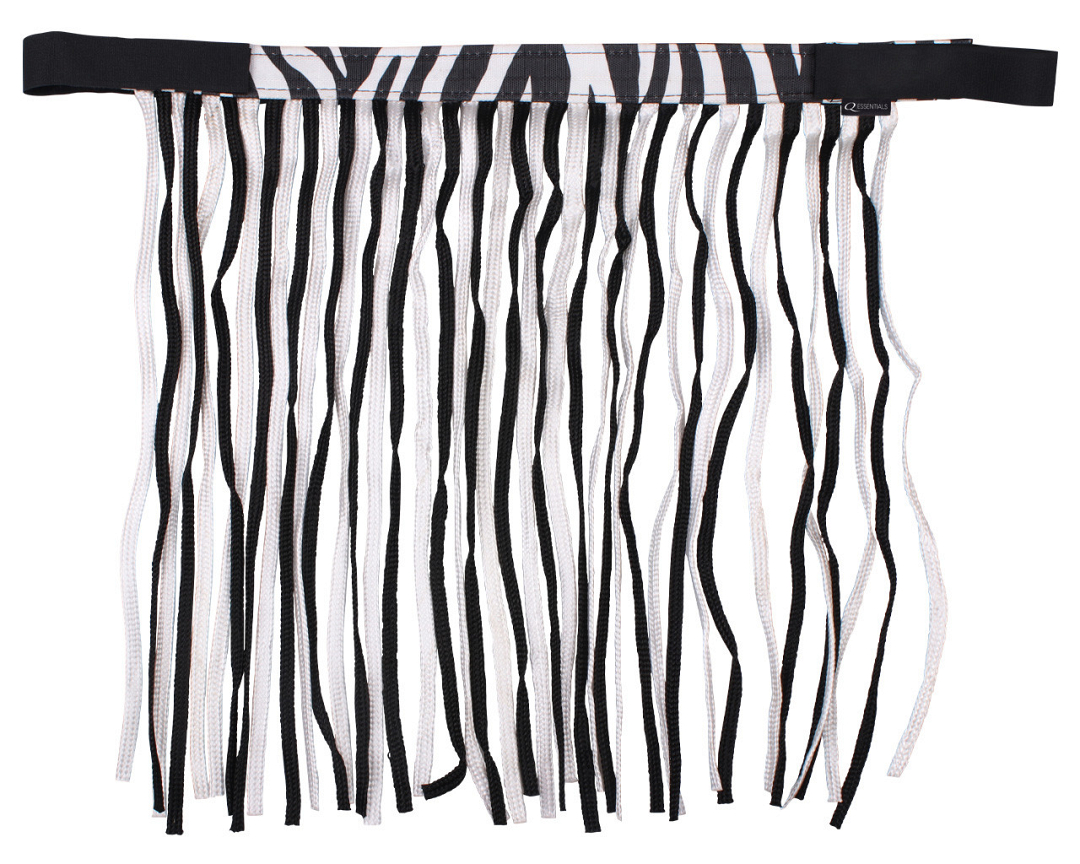 Met de Q-essentials vliegenfrontriem kan je paard de vliegen van zijn hoofd af houden. Deze vliegenfrontriem is voorzien van een opvallend patroon en koorden in twee kleuren. Aan het halster te bevestigen met klittenband.