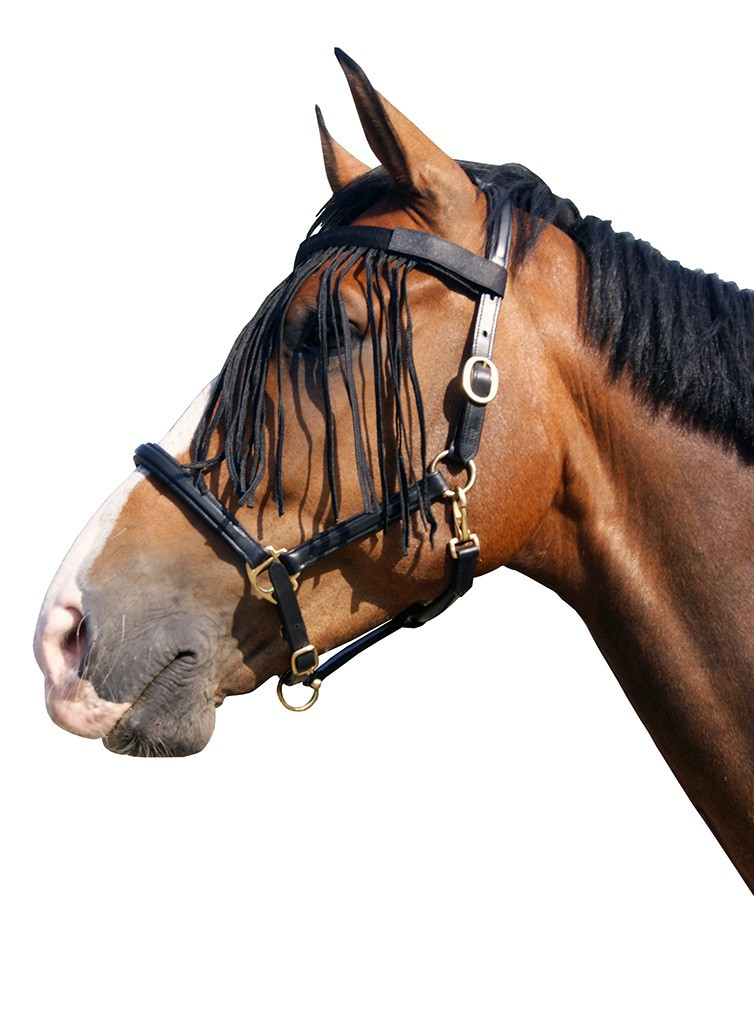 Met een frontriem kan je paard de vliegen van zijn hoofd af houden. Makkelijk te bevestigen aan het halster met klittenband. Voorzien van een opvallende patroon op de frontriem.