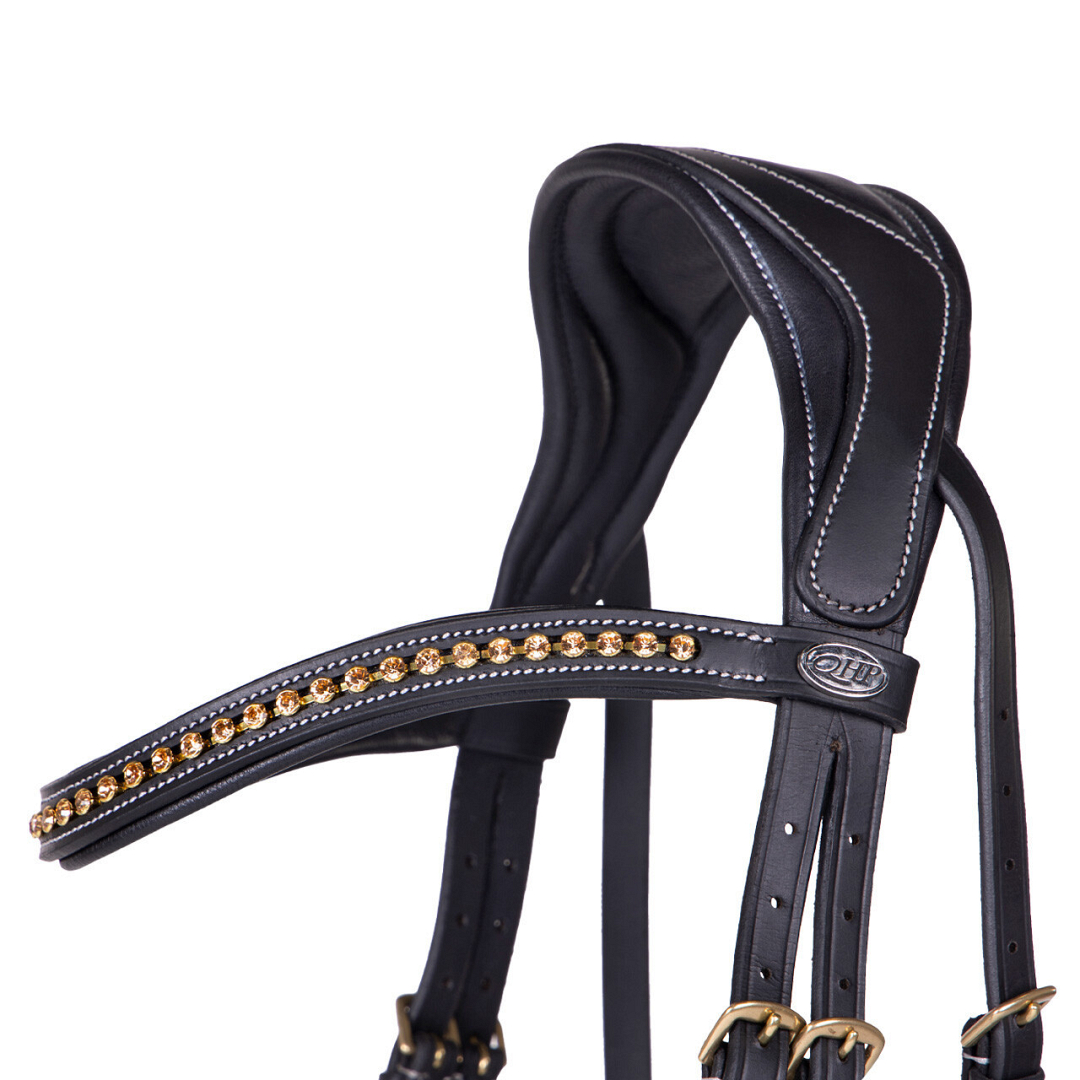 Anatomisch gevormd hoofdstel geschikt voor paarden die gevoelig zijn op het hoofd.