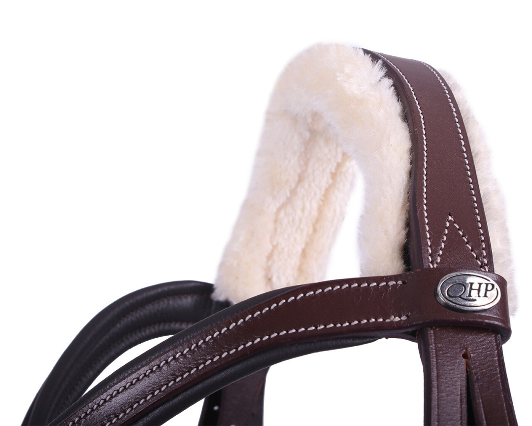 Dit QHP Hoofdstel Ontario is een anatomisch gevormd hoofdstel met een zachte imitatiebont voering. De voering voorkomt irritatie en is dus perfect voor paarden met een gevoelige huid. De witte stiksels en het sierstiksel geven een luxe uitstraling aan het hoofdstel. Voorzien van zachte padding bij de sluiting van de neusriem.