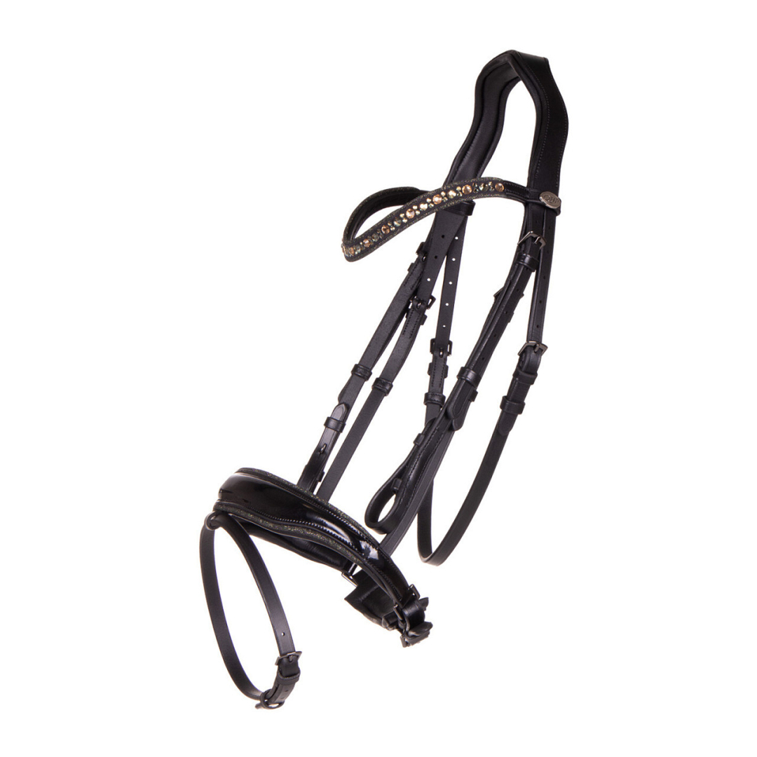 Hoofdstel met laklederen neusriem en een met strass steentjes bedekte frontriem.