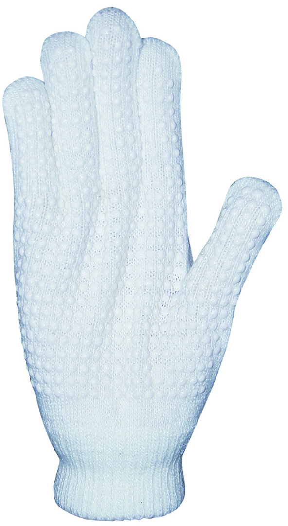 Fijne elastische handschoen van gebreid materiaal en aansluitende boord. De handpalm is voorzien van anti-slip nopjes.