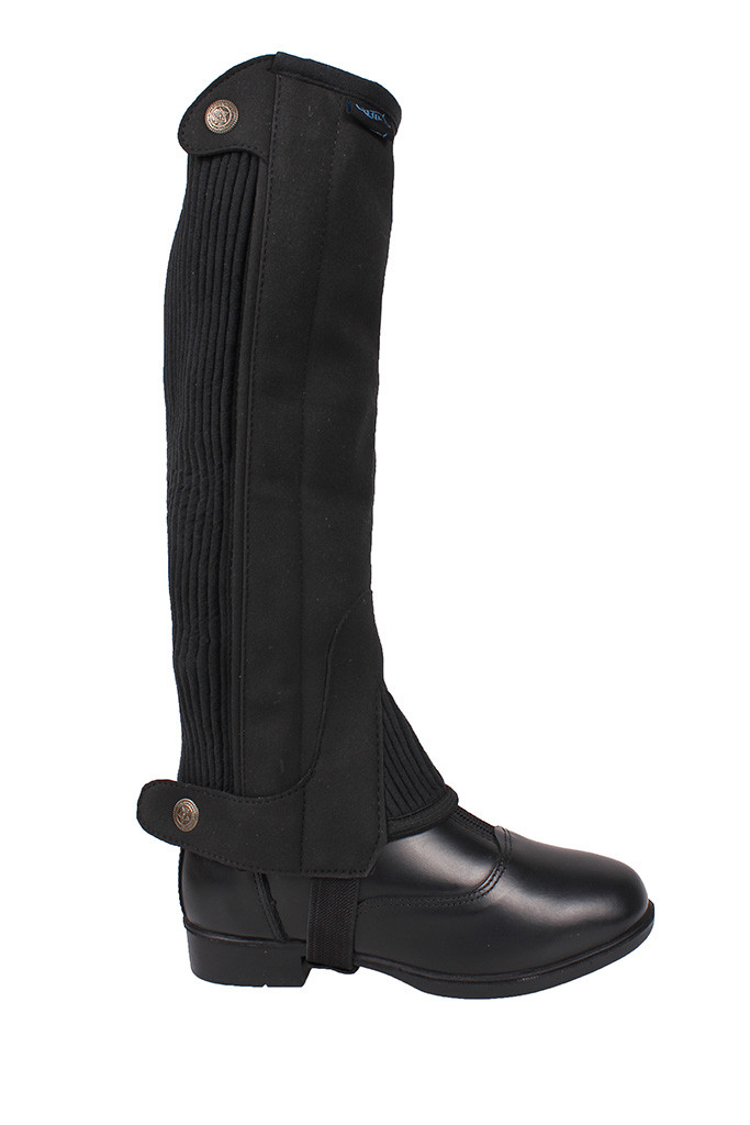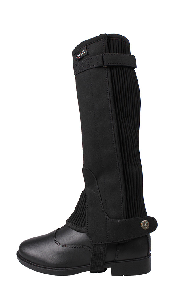 De QHP suede minichap is een goede chap gemaakt van imitatiesuede voor de beginnende ruiter.