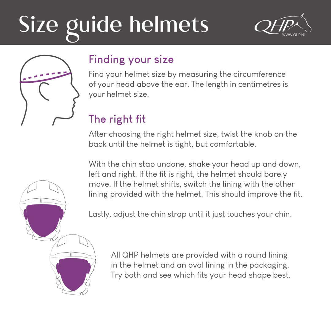De rijhelm is voorzien van drie grote ventilatiegaten en een ventilerende polyester stof voor een goede luchtstroom. Bij de Dynamic rijhelm worden twee voeringen geleverd, één voor een rond en één voor een ovaal hoofd. Dit met de verstelbare achterzijde zorgt ervoor dat de Dynamic rijhelm voor iedereen pasbaar gemaakt kan worden. Voorzien van een een flexibele, matzwarte klep, een kleine QHP opdruk op de achterzijde en een verstelbare vierpunts kinband met zacht omhulsel.