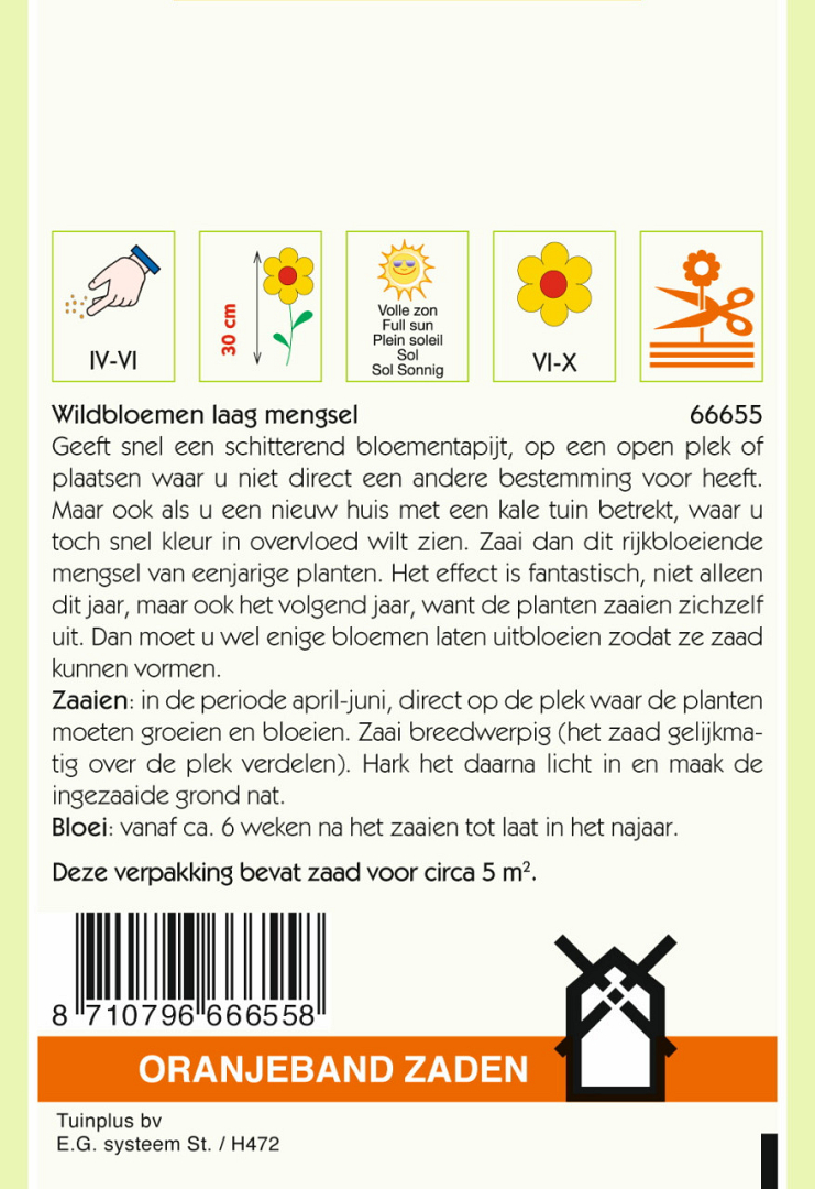 Geeft snel een schitterend bloementapijt, op een open plek of plaatsen waar u niet direct een andere bestemming voor heeft. Maar ook als u een nieuw huis met een kale tuin betrekt, waar u toch snel kleur in overvloed wilt zien. Zaai dan dit rijkbloeiende mengsel van eenjarige planten. Het effect is fantastisch, niet alleen dit jaar, maar ook het volgend jaar, want de planten zaaien zichzelf uit. Dan moet u wel enige bloemen laten uitbloeien zodat ze zaad kunnen vormen.